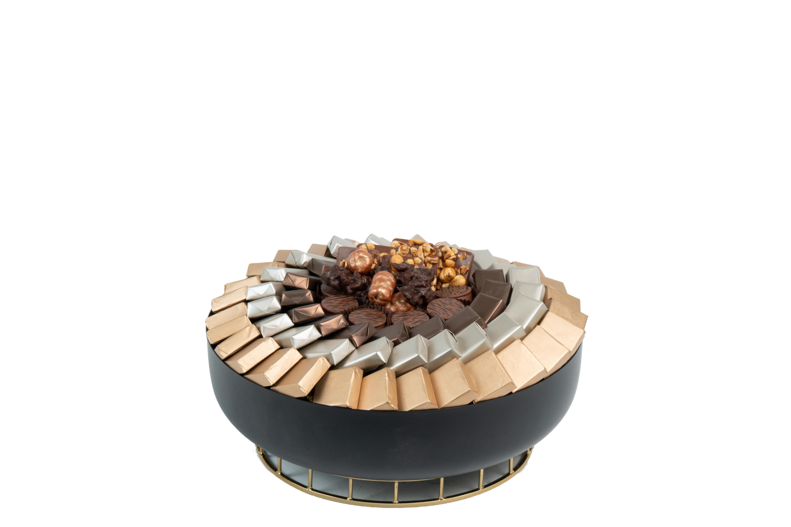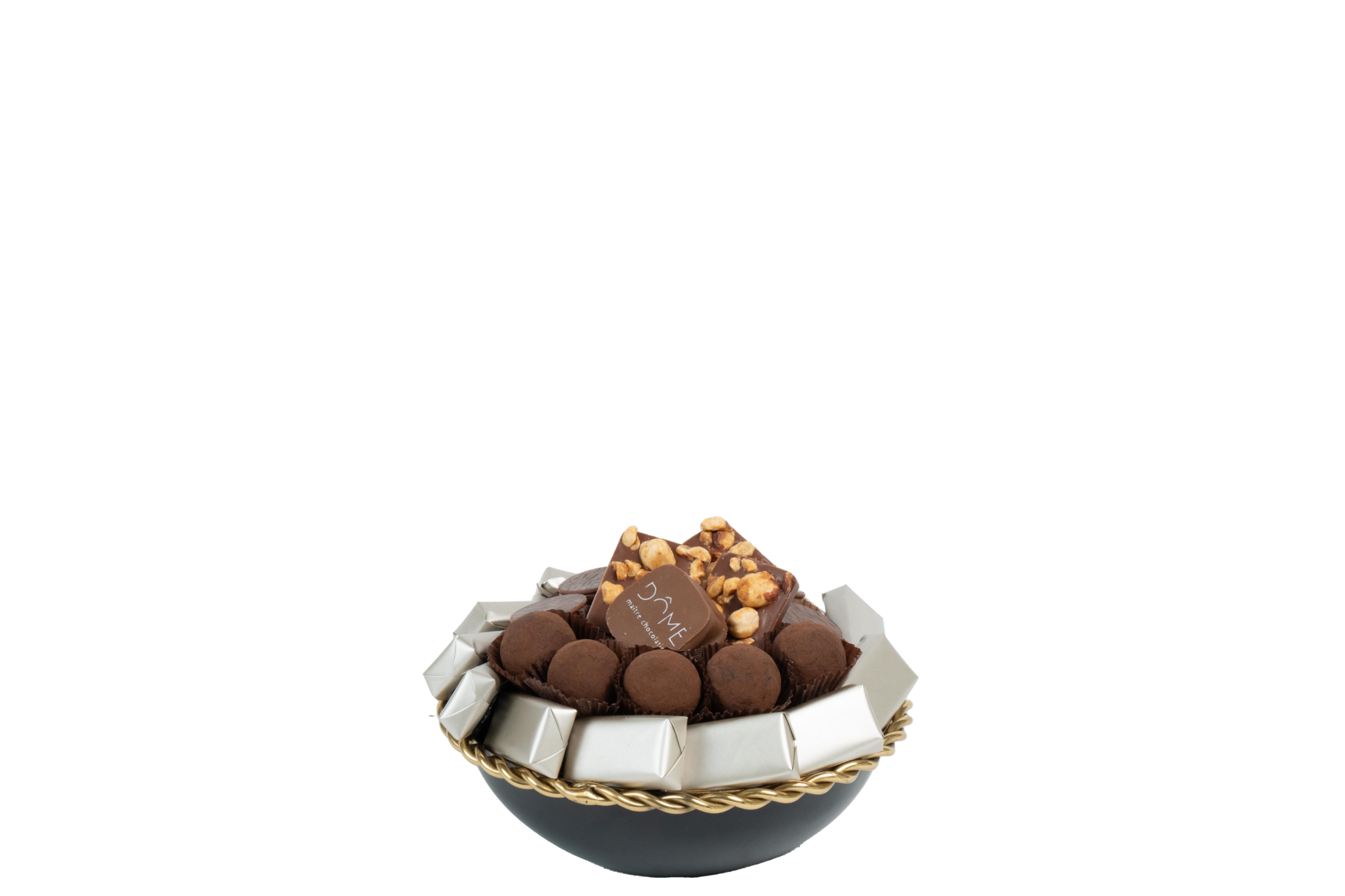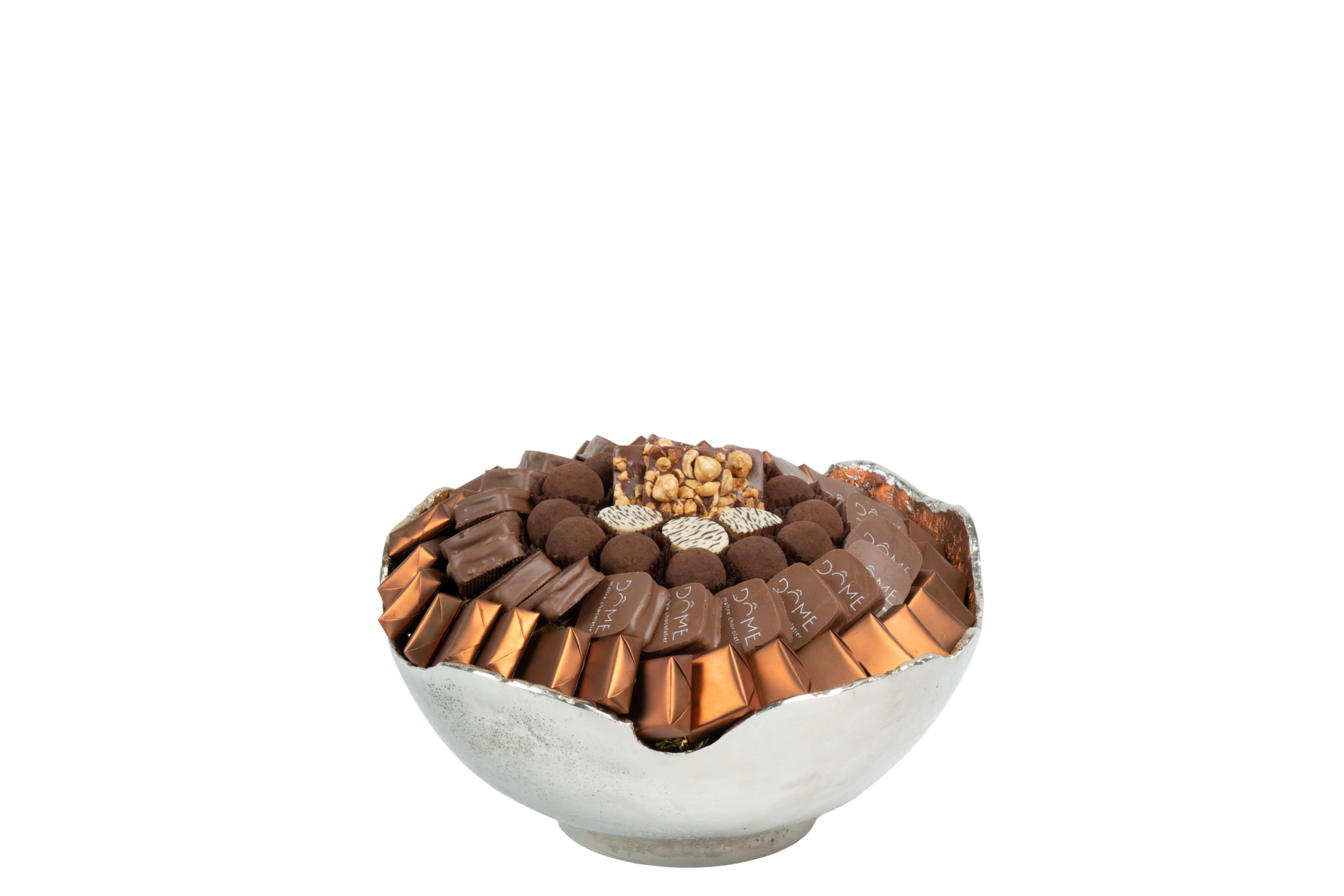 Coupe en métal garnie de chocolat