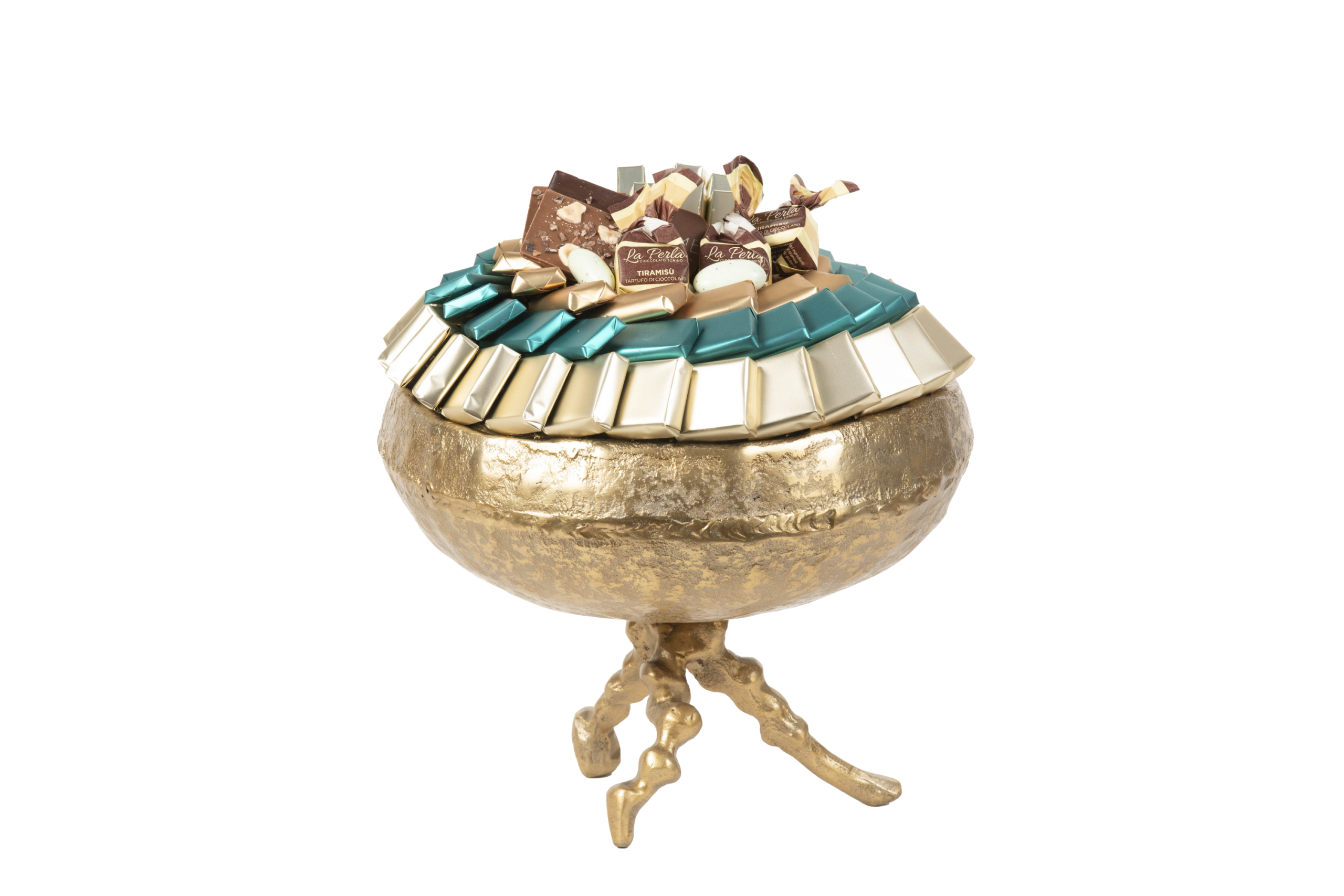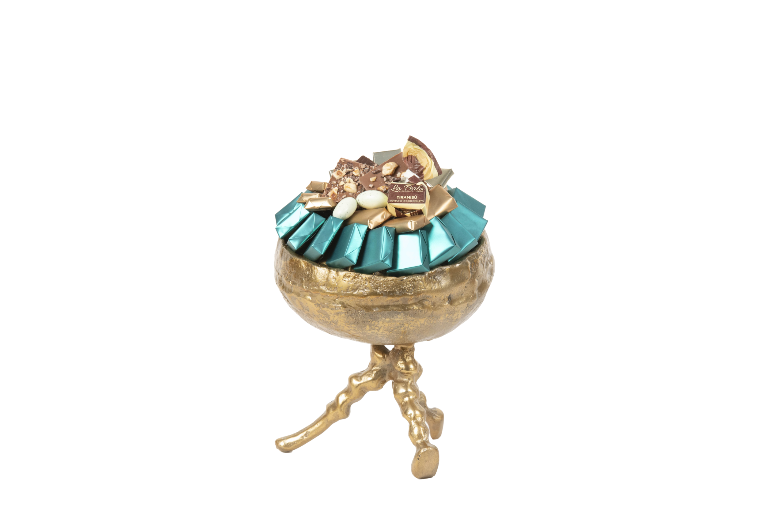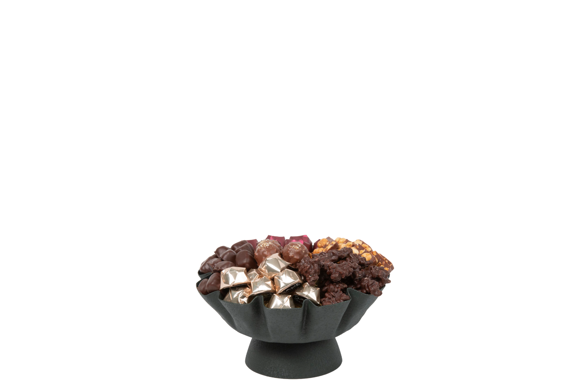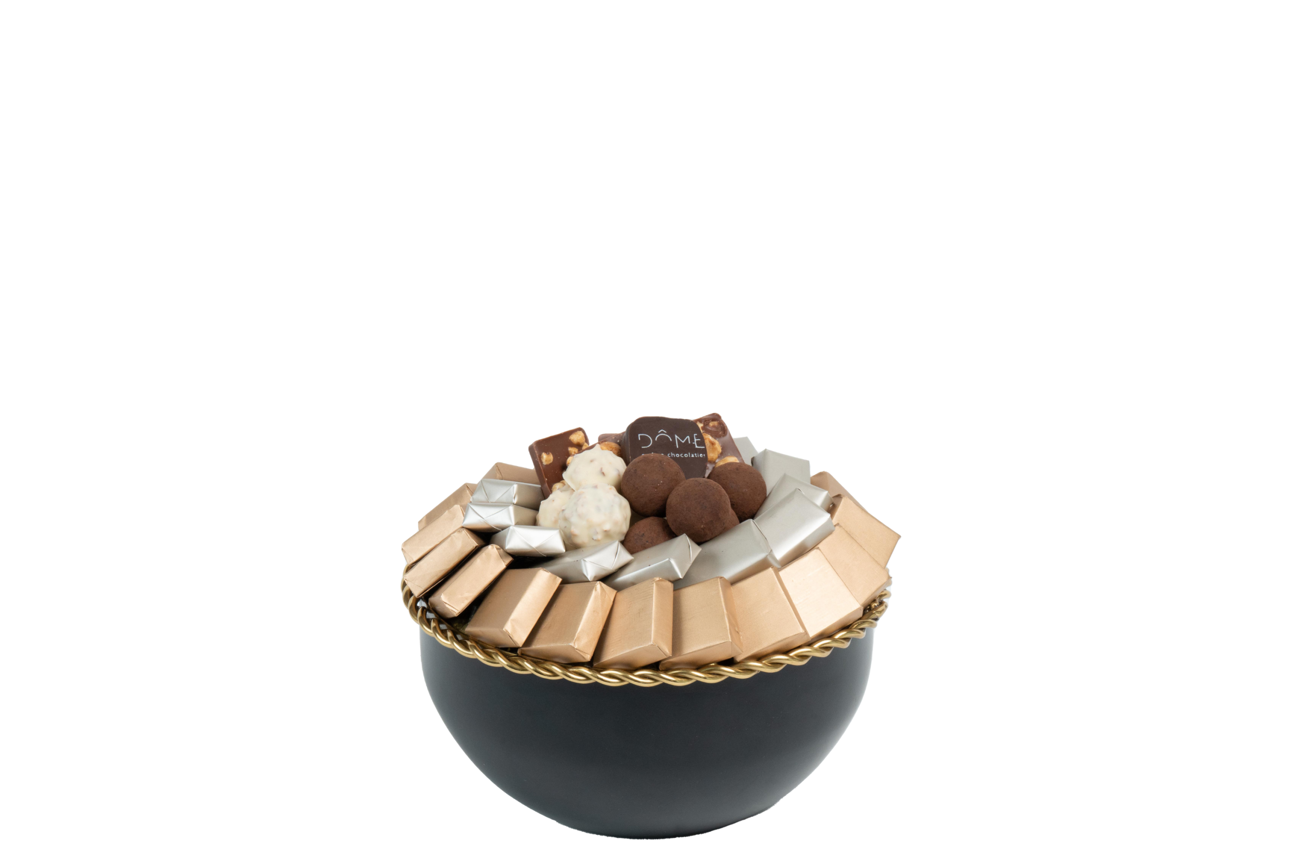 Coupe en métal garnie de chocolat