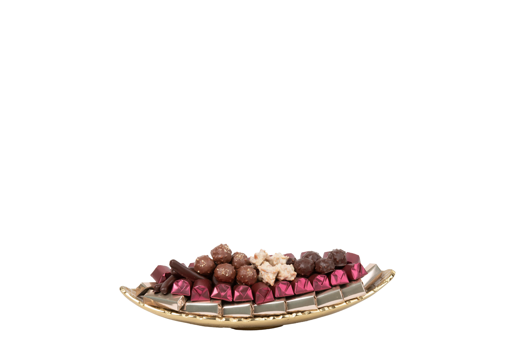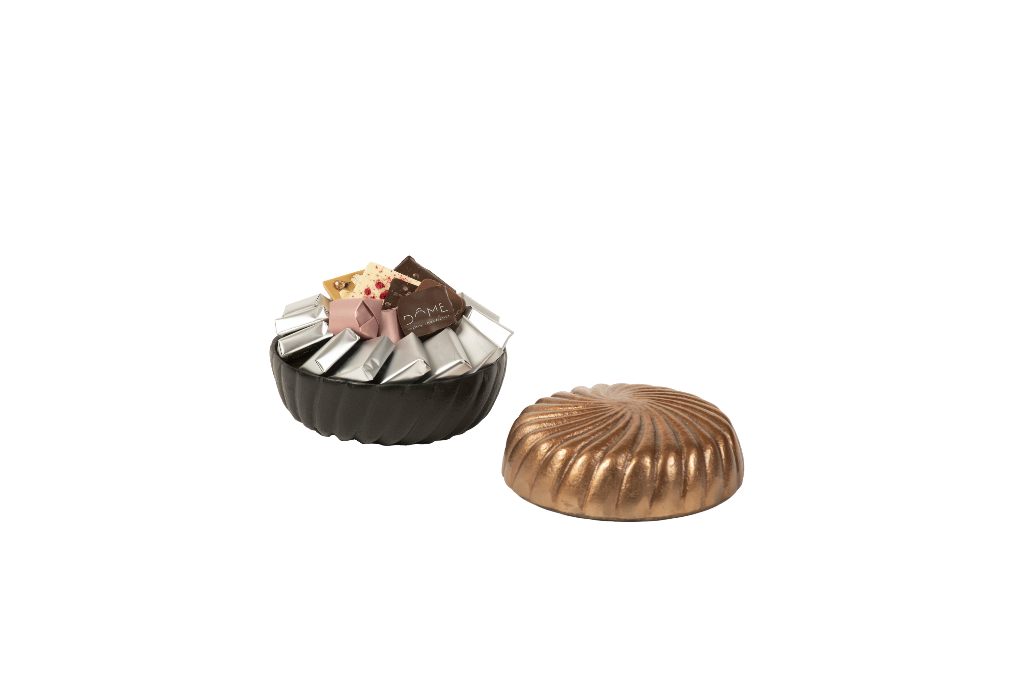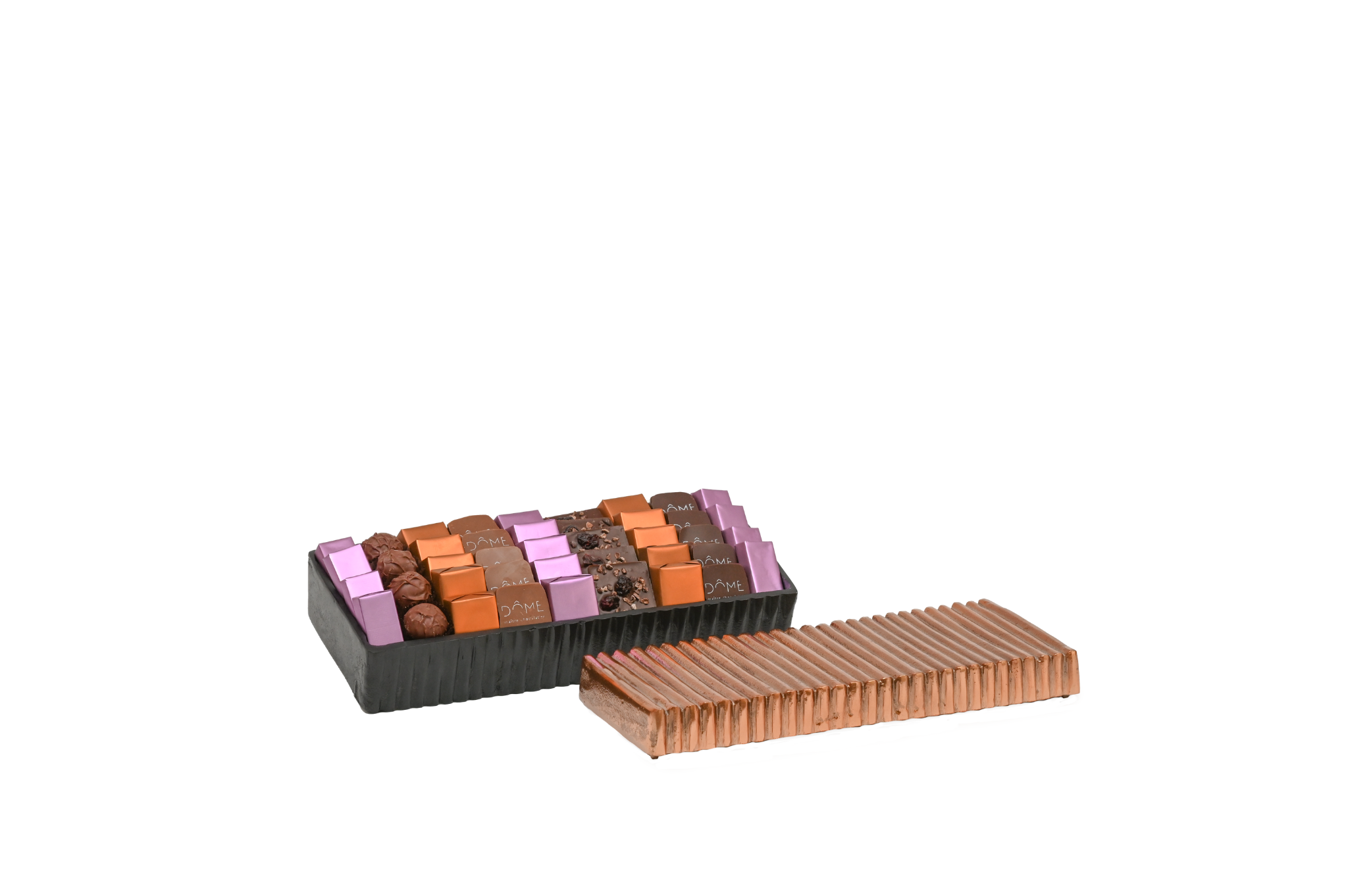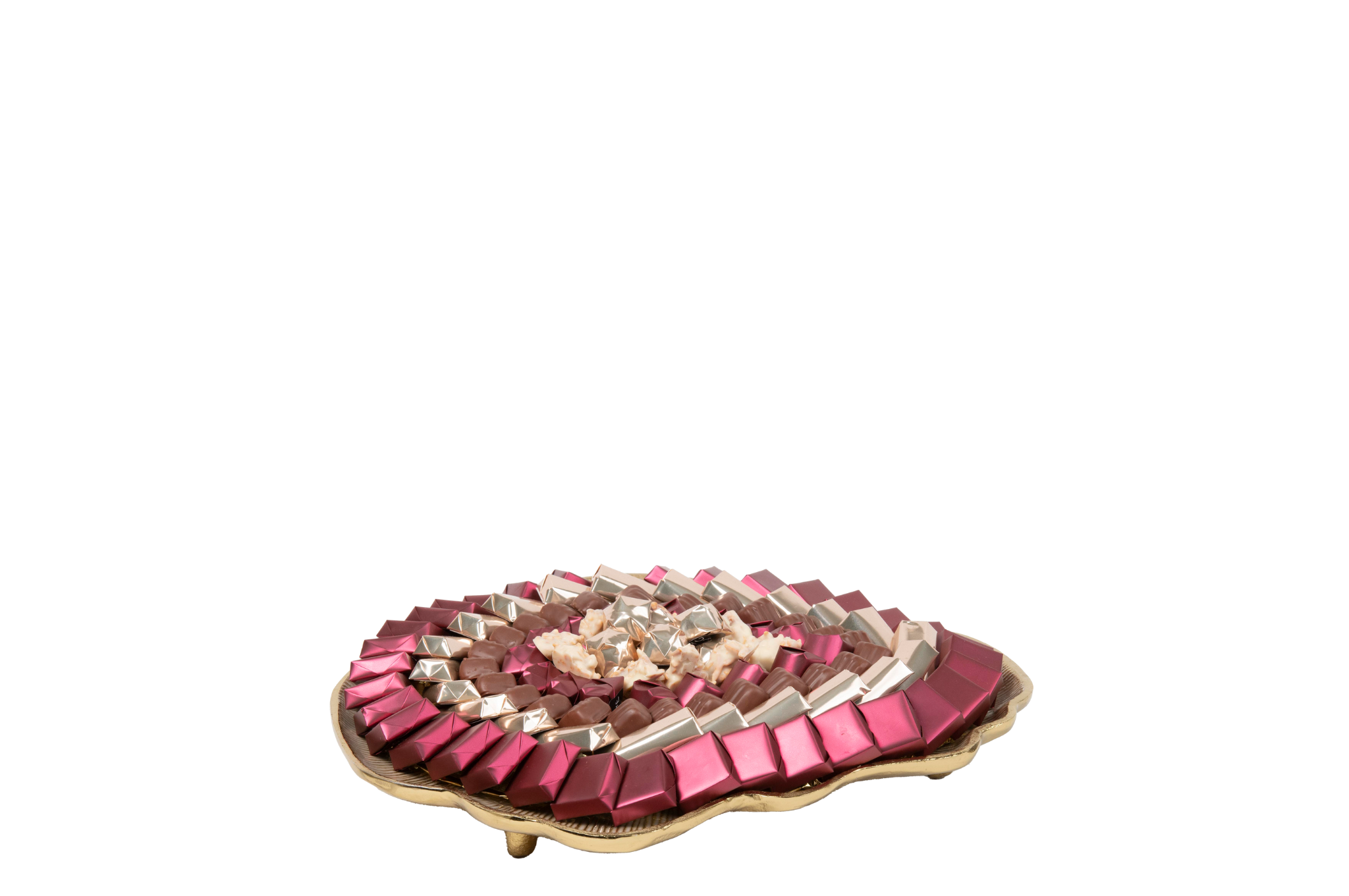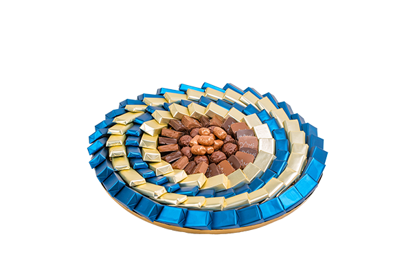 Plateau en métal garni de chocolat