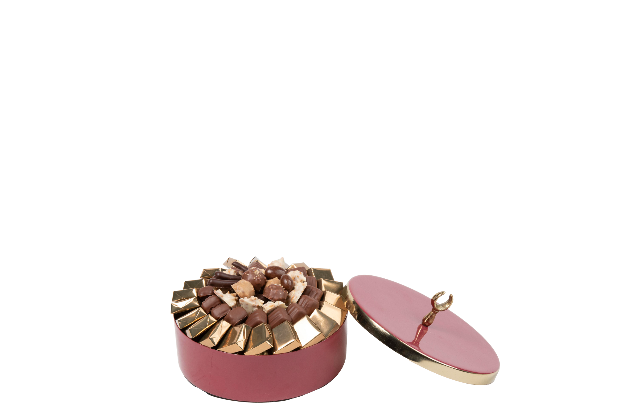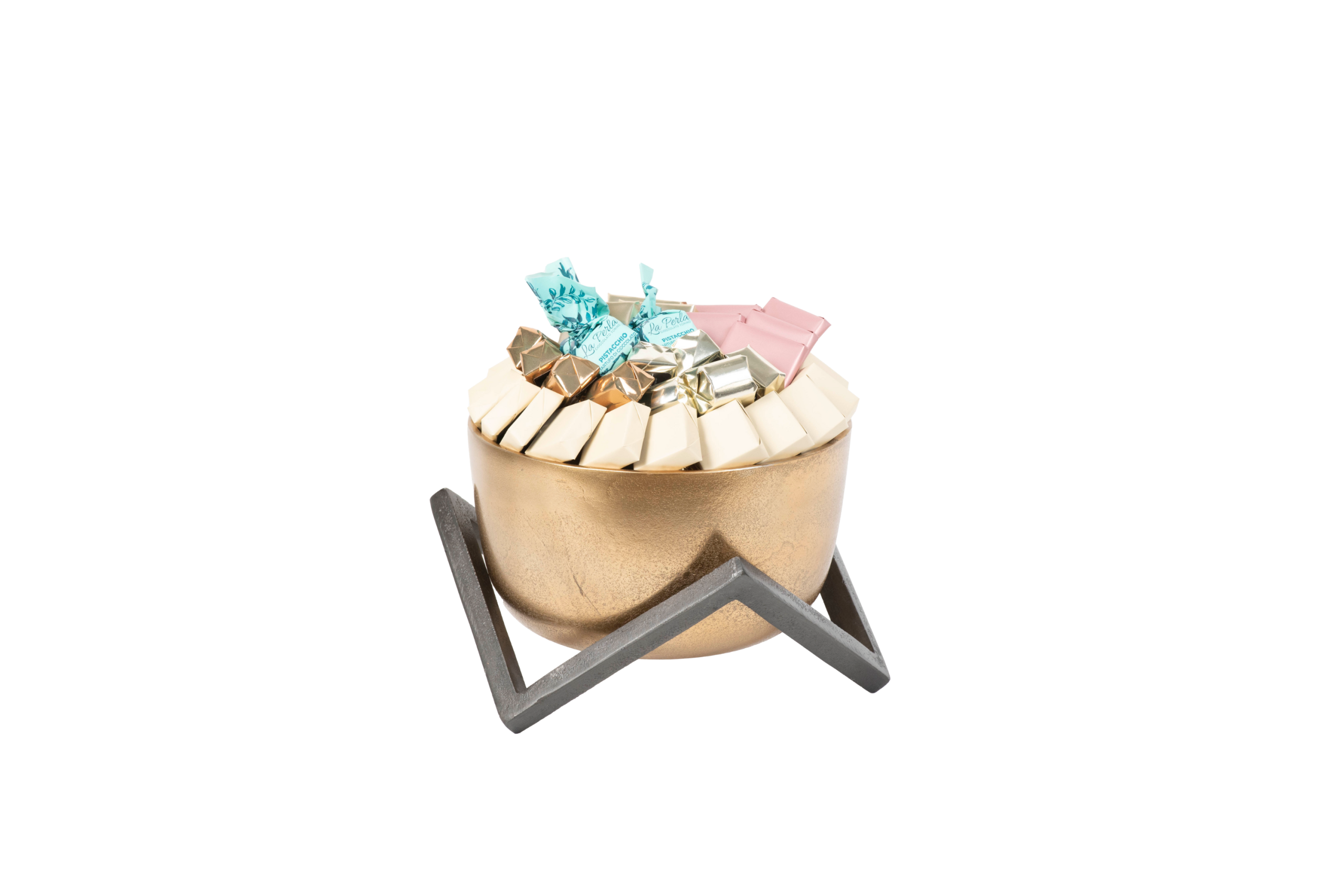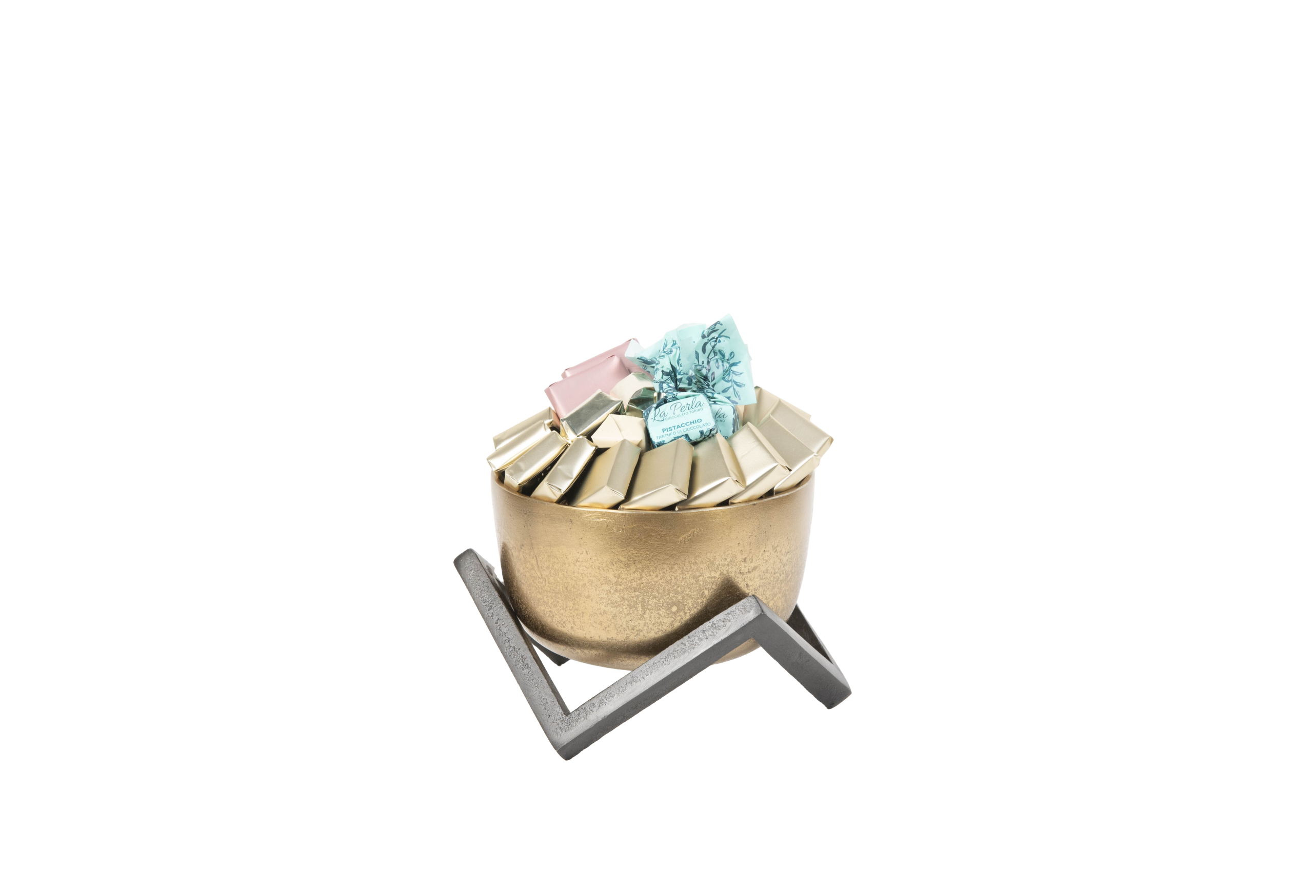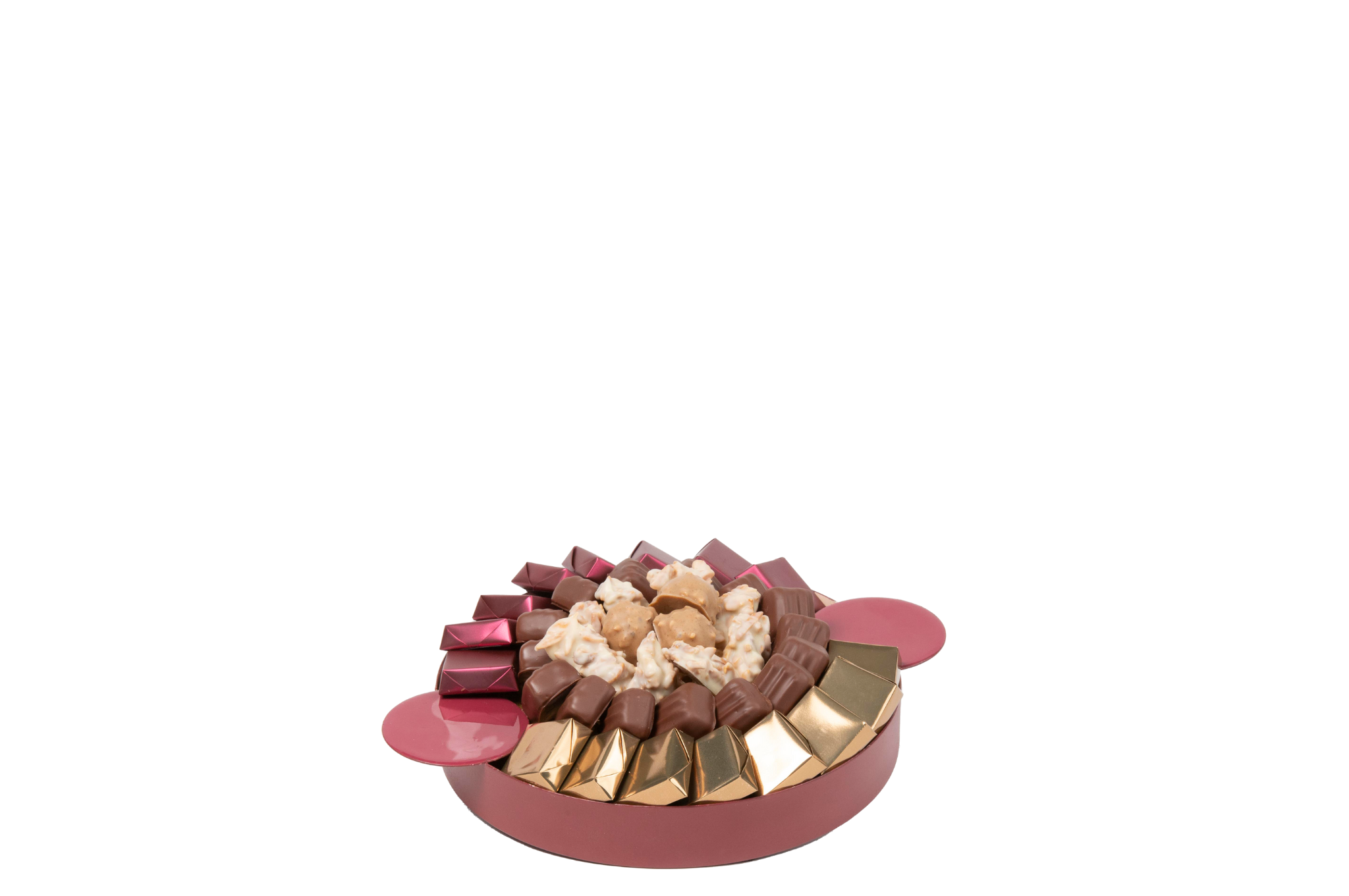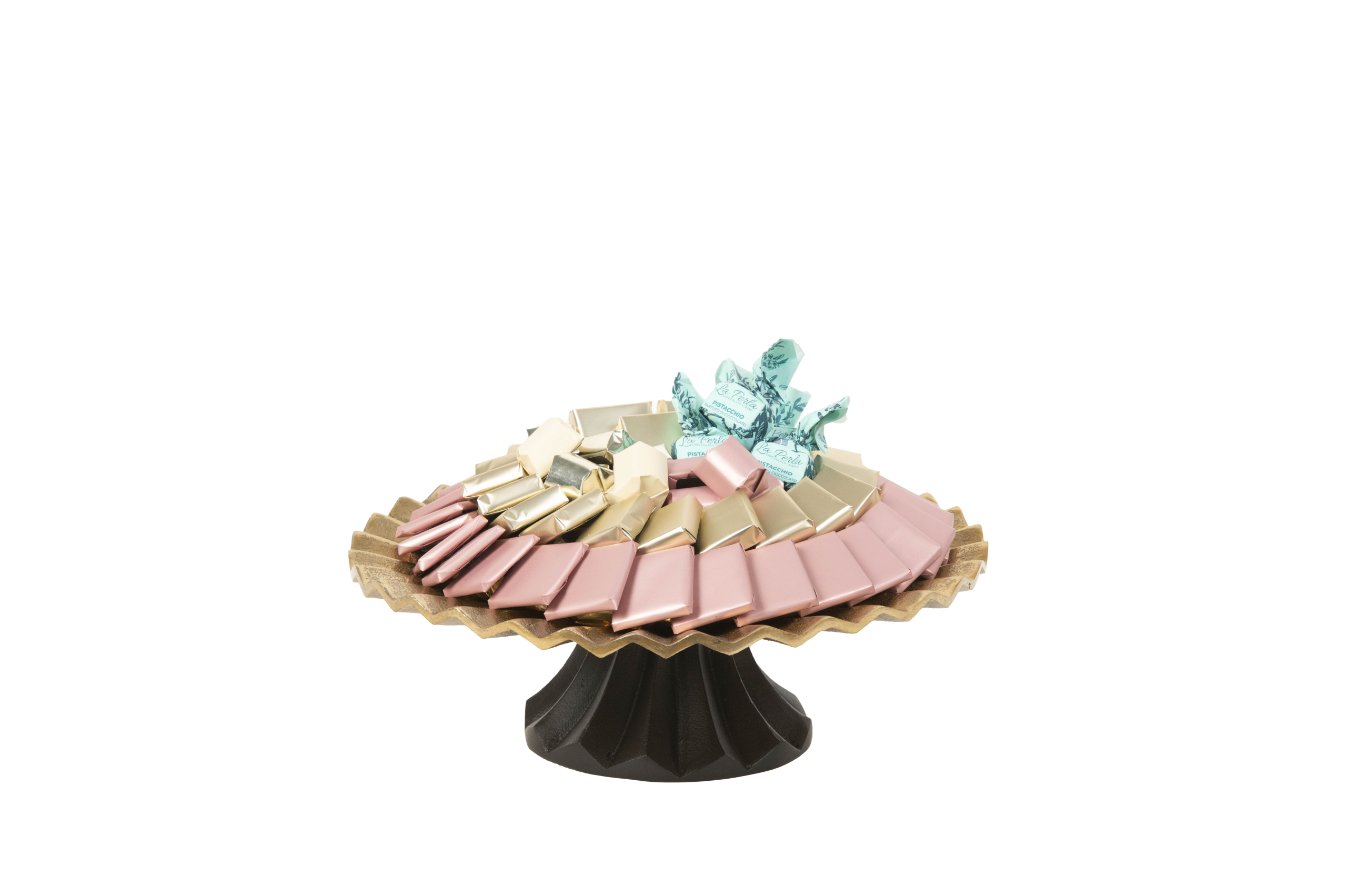 Plateau en métal garni de chocolat