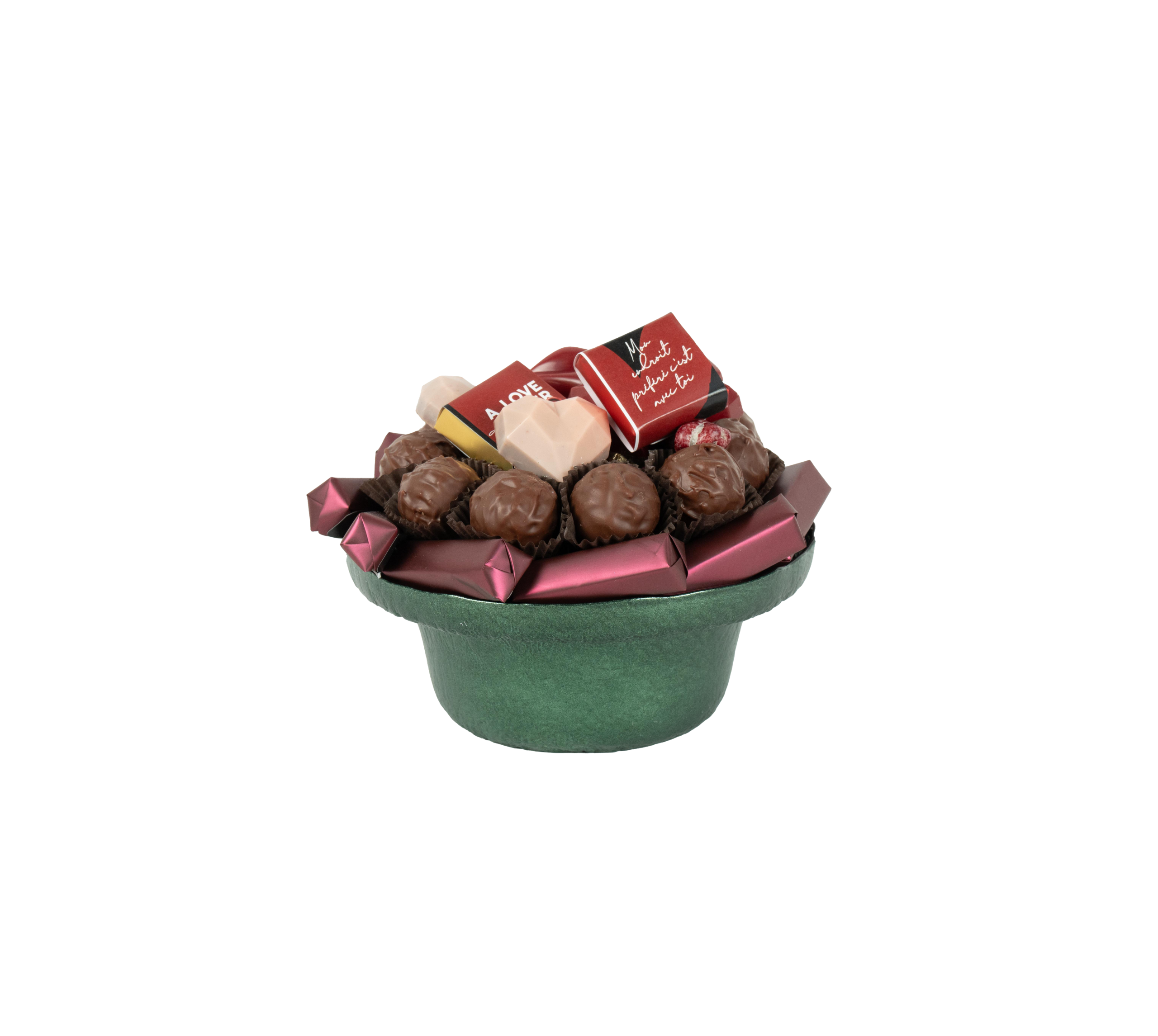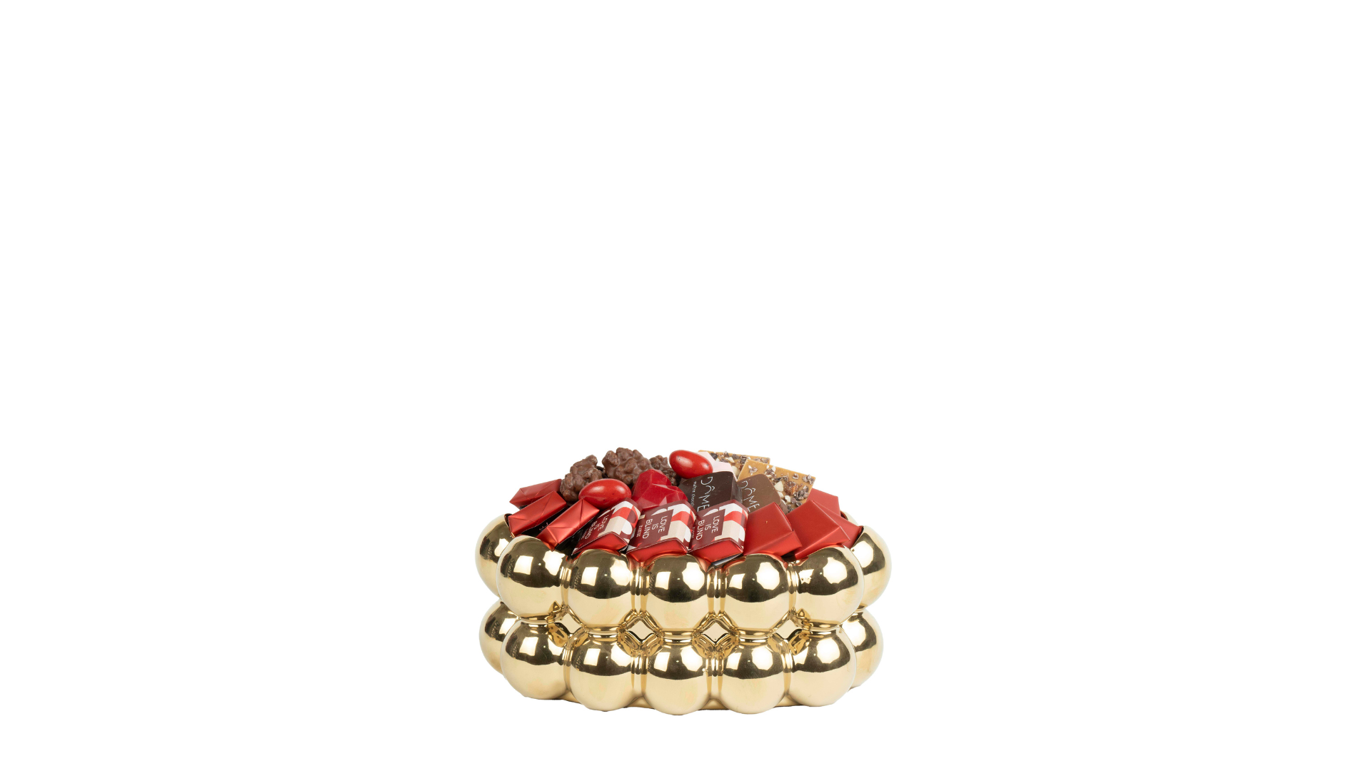 Coupe en verre doré garnie de chocolat
