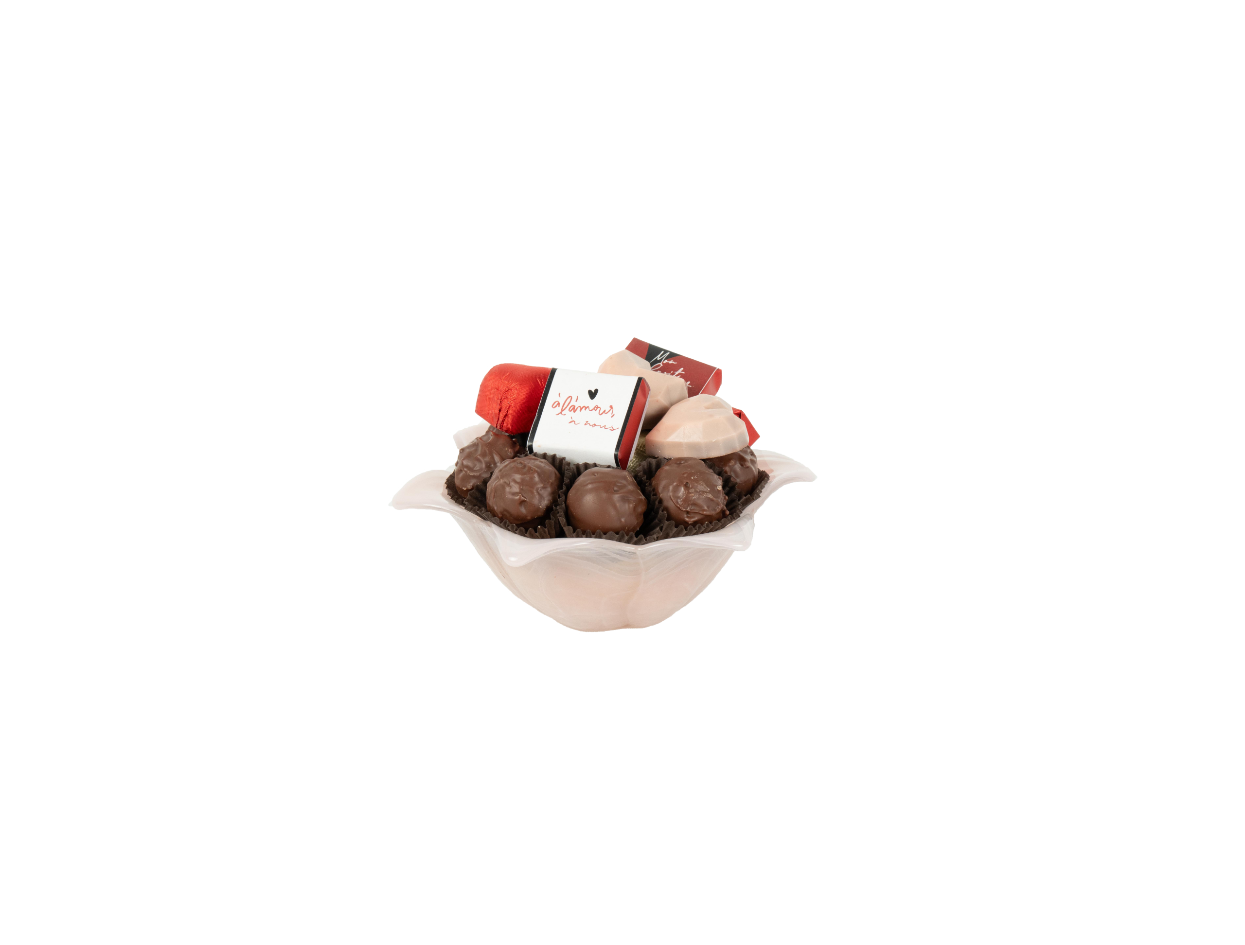 Coupelle en verre couleur Nude garnie de chocolat
