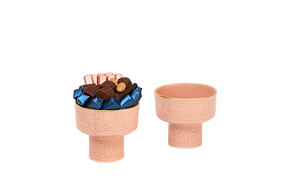 Coupe sur pied en céramique avec empreinte en or garnie de chocolat