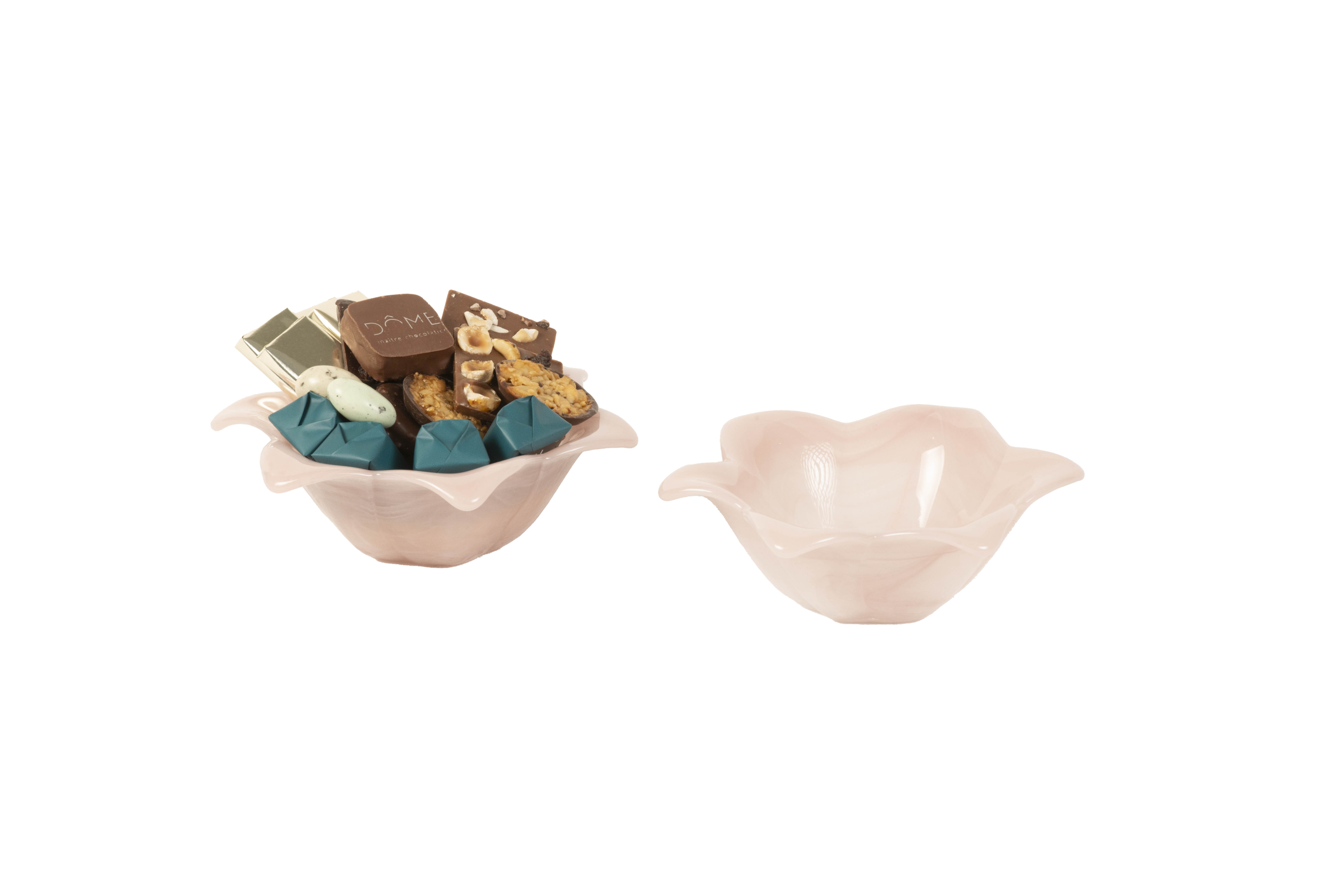 Coupelle en verre couleur nude garnie de chocolat
