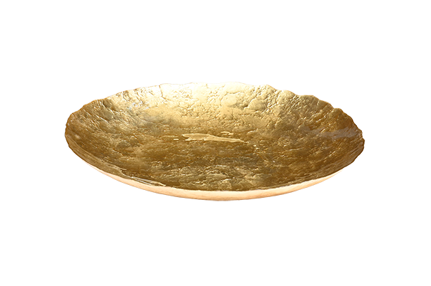 Très grande assiette en verre et feuilles d'or garnie de chocolat